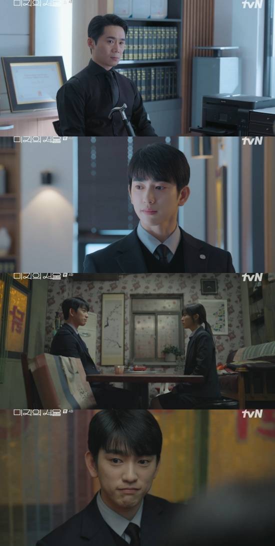 1일 방송된 tvN 새 토일드라마 '미지의 서울' 4회에서는 이충구(임철수 분)가 이호수(박진영)를 협박하는 모습이 그려졌다.