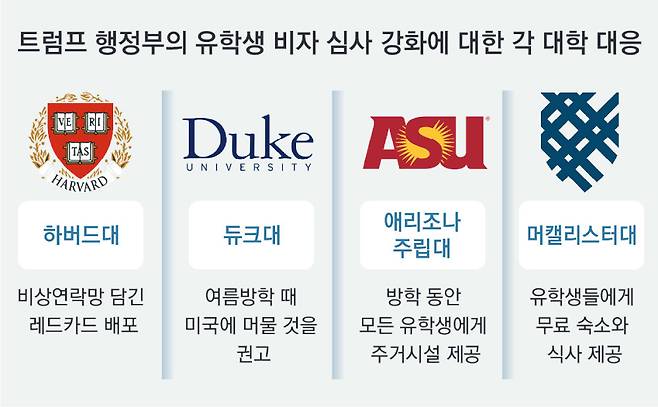 주요대학, 표적 피하려 백악관 접촉… 재입국 걱정 유학생에 방학 거처 제공