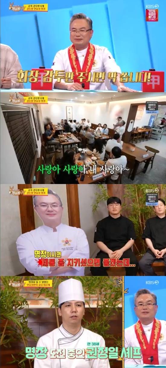 1일 방송된 KBS 2TV '사장님 귀는 당나귀 귀'에서는 안유성이 후배에게 명장 심사 노하우를 전하는 모습이 전파를 탔다.