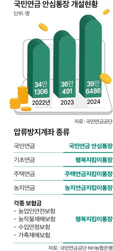 국민연금공단에 따르면 안심통장을 이용하는 수급자는 매년 증가하고 있다. 2022년 34만1306명, 2023년 36만491명, 2024년에는 39만6486명에 달한다. 올해 안으로 40만명을 넘어설 것으로 보인다.