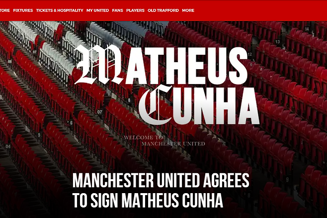 [골닷컴] 강동훈 기자 = 이번 시즌 반세기 만에 최악의 성적을 거두면서 굴욕을 겪은 맨체스터 유나이티드(맨유·잉글랜드)가 다음 시즌 반등을 노리겠다는 계획 속에 일찌감치 움직이기 시작하더니, 여름 이적시장 문이 열리자마자 ‘삼바 킬러’ 마테우스 쿠냐(26·브라질)를 품으면서 공격진을 보강했다. 올여름 ‘1호 영입’이 된 쿠냐는 비자 발급 및 등록절차가 완료되는 대로 맨유에 합류해 본격적으로 새 시즌 준비에 들어갈 예정이다.