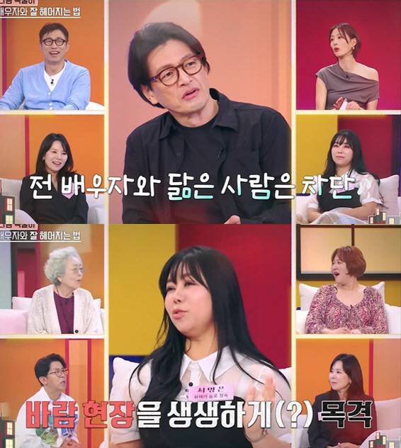 또한 '나는솔로' 10기 정숙으로 알려진 최명은은 이혼 후 만난 남자가 바람둥이였다고 고백했다. 그는 "제 친구가 (남자친구가) 다른 여자랑 모텔을 들어가는걸 본거다. 주인하고 얘기해서 키를 대니까 문이 열릴거 아니냐. 열심히 아주 리얼로 생으로 제대로.."라고 바람 현장을 목격한 경험을 전했다.