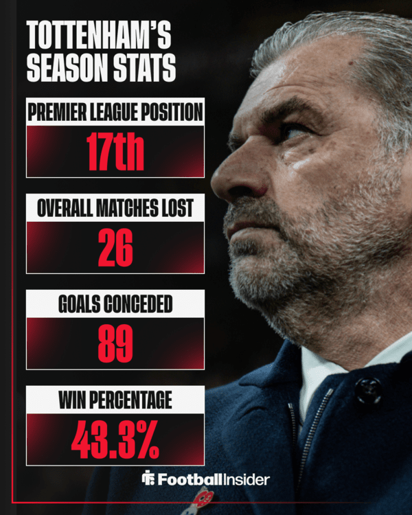 그러나 PL 17위, 잉글랜드축구협회(FA)컵 4라운드(32강), 카라바오컵 4강 탈락 등 국내 대회 성적은 눈뜨고 봐줄 수 없는 수준이다. 크리스티안 로메로, 제임스 매디슨 등 주장단이 공개적으로 포스테코글루를 지지하기는 했지만 지금으로서 잔류 가능성은 희박하다. 이미 안도니 이라올라 본머스 감독, 토마스 프랭크 브렌트포드 감독, 마르코 실바 풀럼 감독 등이 후보로 거론되고 있다.