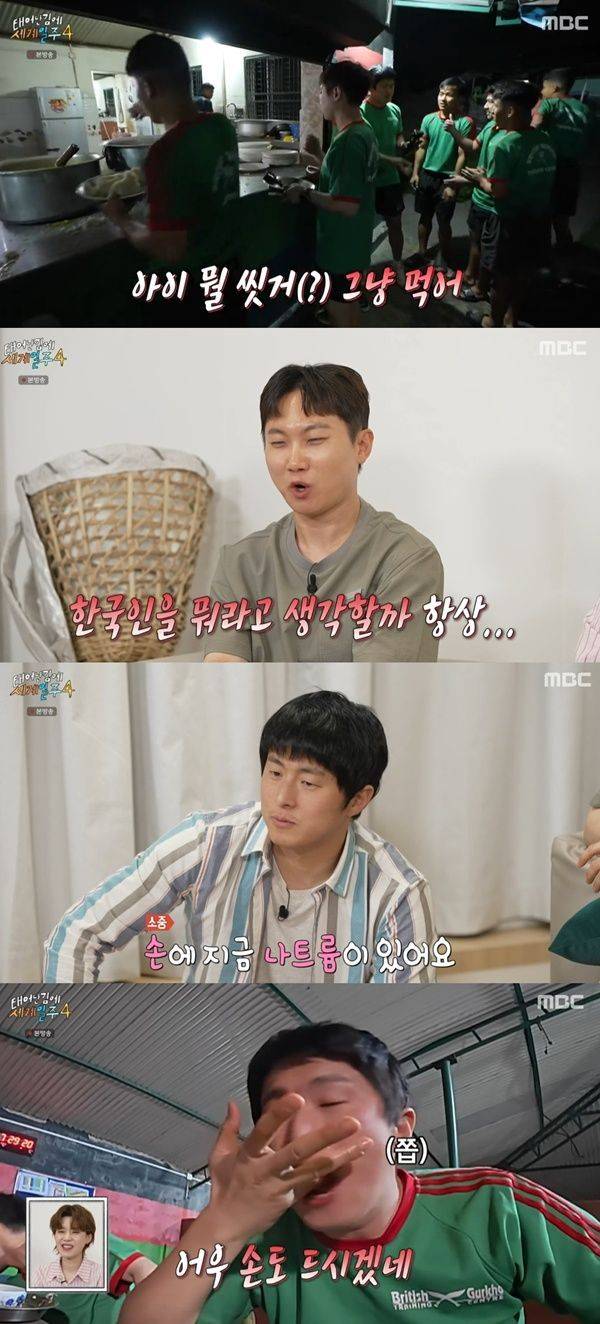 기안84는 "손에 나트륨이 있다"고 말하며 웃음을 안겼다. 결국 수돗가에 가서 손을 씻기 시작했지만, 왼손만 대충 씻어 눈길을 끌었다.