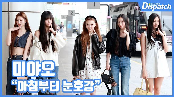 미야오(MEOVV)가 이른 아침 출국길에 우월한 미모를 발산했다.