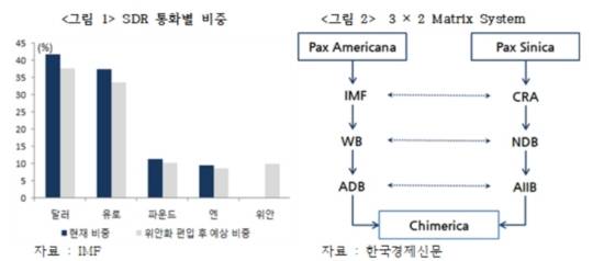 국제금융기구의 분절화 움직임도 뚜렷하다. 국제통화기금(IMF)은 중국판 IMF인 긴급외환보유기금(CRA)이 조성됐고, 유럽판 IMF인 유럽통화기금(EMF) 창설이 검토되고 있다. 2차 대전 이후 미국이 주도해온 세계은행(World Bank)과 아시아개발은행(ADB)에 대항하기 위해 중국 주도로 신개발은행(NDF)과 아시아인프라개발은행(AIIB)이 설립됐다. 미국과 중국 간 ‘3 x 2 메트랙스 분화 시스템’이 정착되고 있는 셈이다.