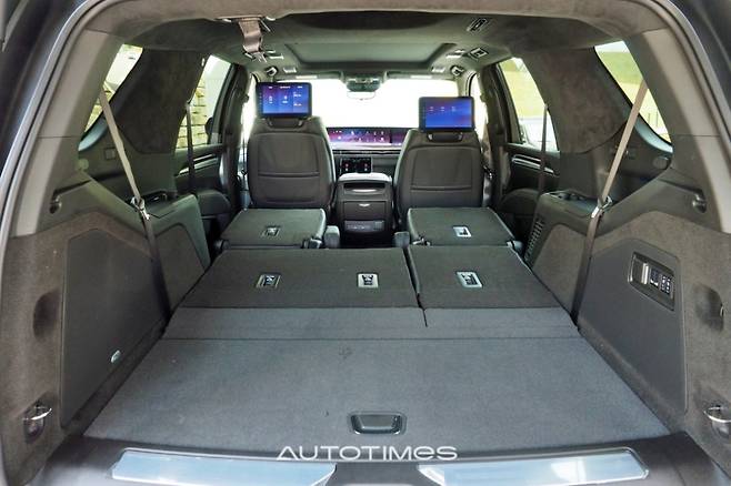 독립 시트 구성의 2열은 매우 편하다. 12.6인치 개인용 디스플레이를 바탕으로 전용 공조장치와 송풍구, 컵홀더, 선루프 등이 반기며 미니밴에 들어와 있는 듯한 착각마저 준다. 또 원터치로 더블 폴딩까지 지원해 3열 탑승자를 위한 배려도 살펴볼 수 있다. 그만큼 쉽게 타고 내릴 수 있는 3열은 성인 남성이 앉아도 넉넉하다.