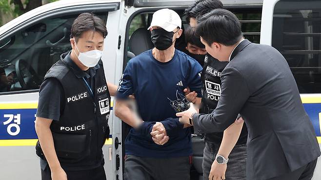 ▲ 서울 지하철 5호선 열차 안에 불을 지른 60대 남성이 2일 영장실질심사를 위해 서울남부지법에 출석하고 있다.