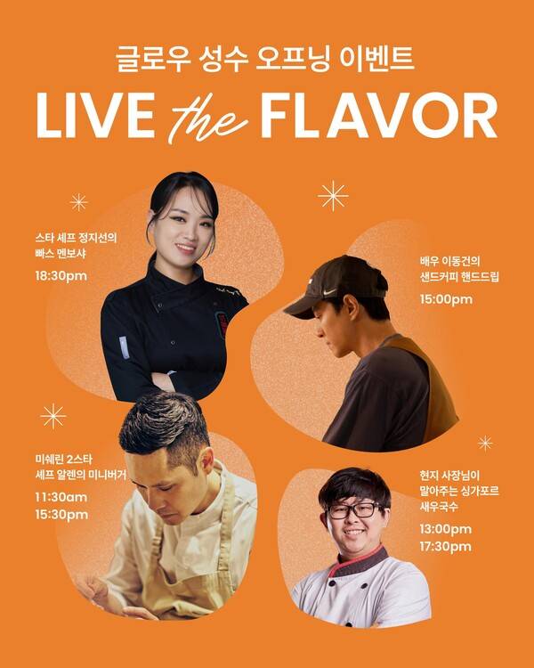 특히 싱가포르 새우국수 맛집 '따시지아(Ta-sih-jia)'의 한국 첫 상륙이다. 싱가포르 로컬 맛집 따시지아는 미슐랭 빕 구르망에 선정된 진한 새우 육수와 탱글한 면발로 현지인과 여행객 모두의 찬사를 받고 있으며, 한국에서는 오직 글로우 성수에서만 맛볼 수 있다.