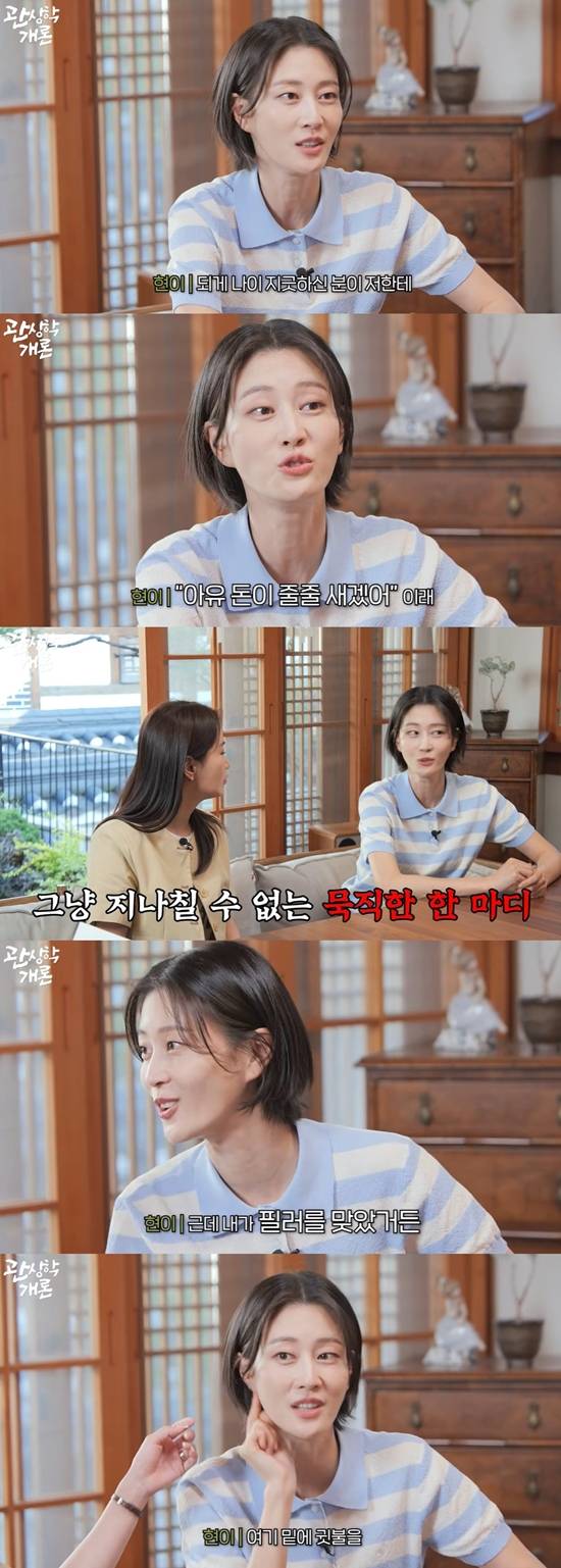 이현이는 "제가 그냥 어디 스쳐 지나가다가 되게 나이 지긋하신 분이 저한테 '아유 돈이 줄줄 새겠어'이랬다. 얼굴을 보니 귀가 칼귀라고. 그래서 내가 여기 귓볼 밑에 필러를 맞았다"고 고백했다.
