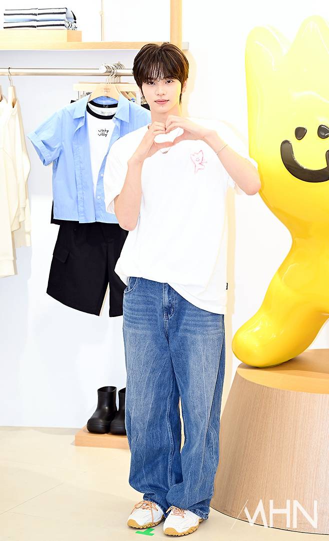 (MHN 이현지 기자) 그룹 투어스(TWS) 신유가 2일 오전 서울 중구 명동에서 진행된 한 캐주얼 브랜드 서울 플래그십 스토어 오픈 기념 포토월에 참석해 포토타임을 갖고 있다.