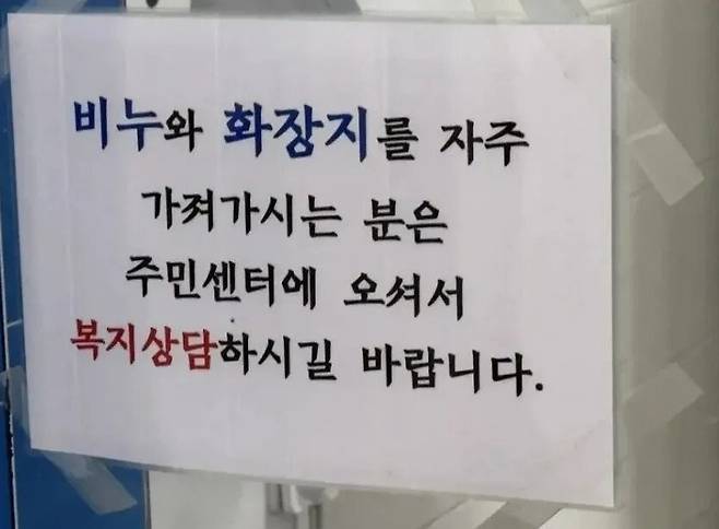 또 사라진 휴지·비누…주민센터 "가져가신 분, 복지 상담받으세요"