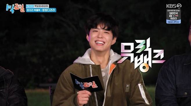 이어진 잠자리 복불복 대결에서는 '뮤직뱅크' 역대 1위곡들로 꾸며진 음악 퀴즈가 펼쳐졌다. '뮤직뱅크' 은행장 출신 박보검은 9년 만에 MC 멘트에 도전했고, 정확한 발음과 통통 튀는 에너지를 발산하며 녹슬지 않은 진행 실력을 뽐냈다.