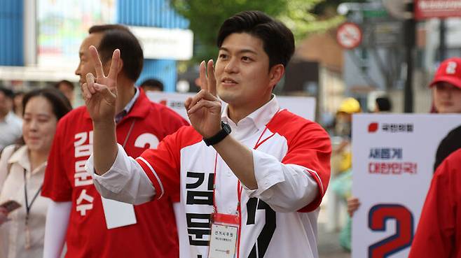 ▲ 국민의힘 김용태 비상대책위원장이 1일 오후 대구 동성로에서 김문수 대선 후보에 대한 지지를 시민들에게 호소하고 있다.