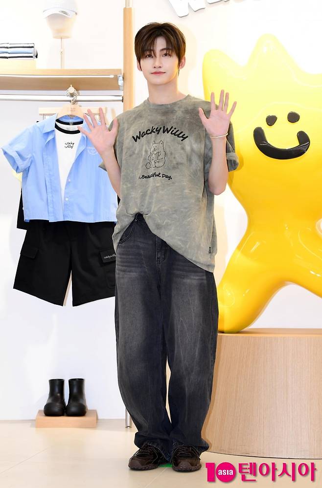 [텐아시아=조준원 기자]그룹 투어스(TWS/신유, 도훈, 영재, 한진, 지훈, 경민) 지훈이 2일 서울 중구 와키윌리 서울에서 열린 캐주얼 브랜드 와키윌리(wackywilly) 서울 플래그십 스토어 오픈 행사에 참석해 포즈를 취하고 있다.