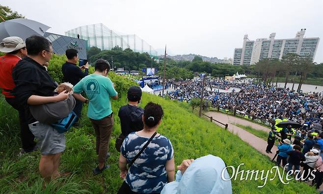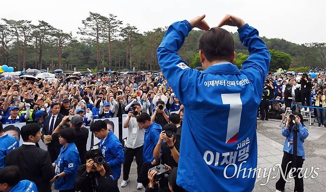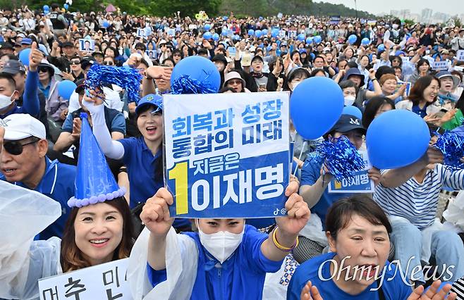 | ▲ 2일 오전 서울 강북구 북서울꿈의숲 서문광장에서 열린 이재명 더불어민주당 대선 후보 유세에서 지지자들이 이 후보를 향해 환호하고 있다. |