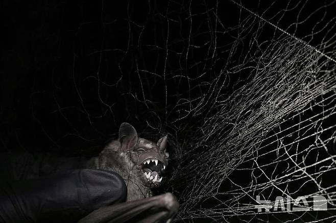 [파나마=AP/뉴시스] = 1일(현지 시간) 파나마 감보아에서 스미소니언 열대 연구소의 과학자가 연구용 박쥐를 포획하고 있다. 2025.06.02.
