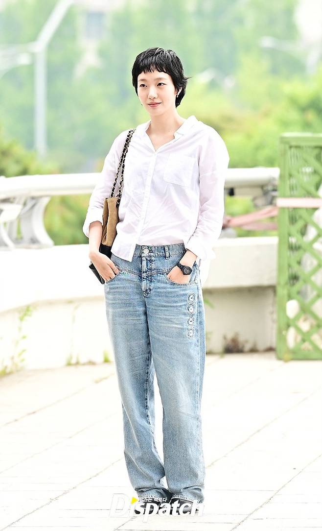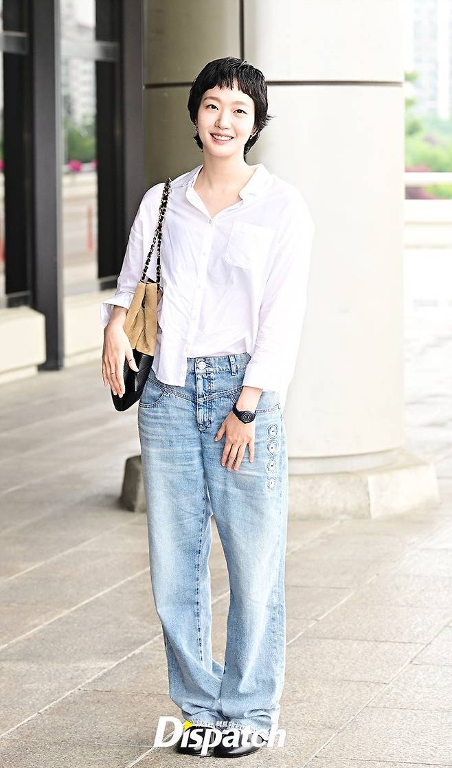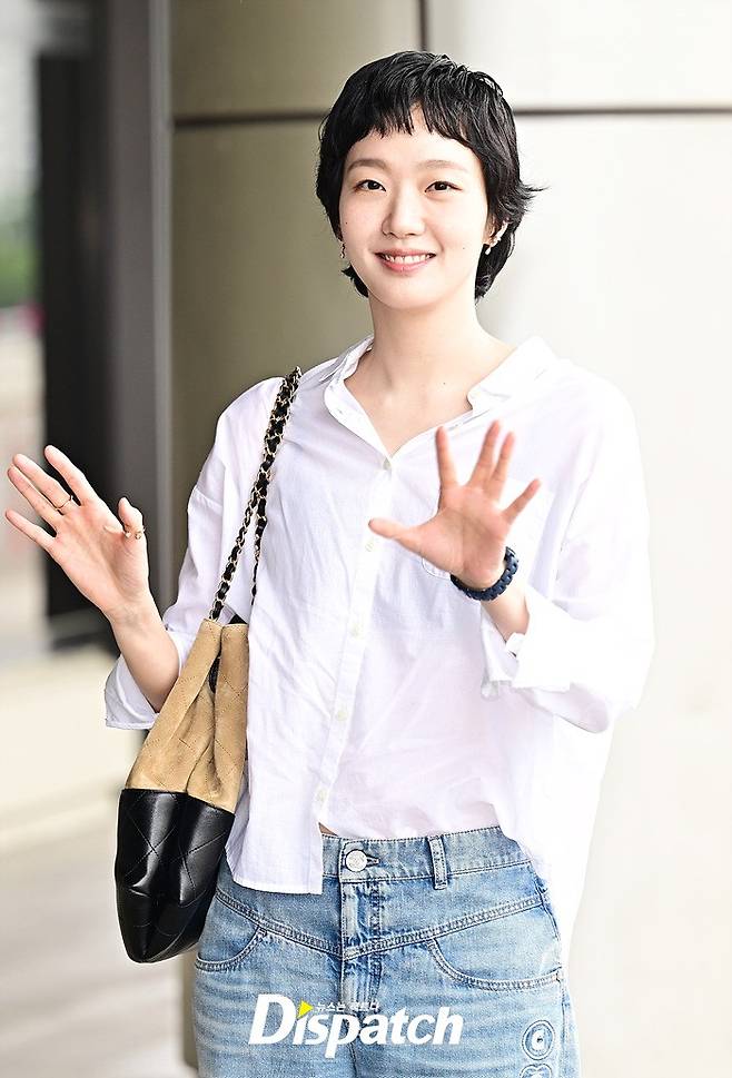 김고은은 화이트 셔츠와 데님진으로 캐주얼한 공항패션을 연출했다. 사랑스러운 미소와 깜찍한 포즈가 돋보였다.