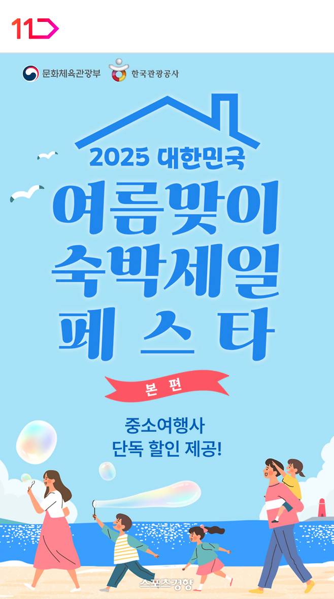 11번가가 ‘2025 대한민국 여름맞이 숙박세일 페스타-본편’(이하, 숙박세일 페스타)에 동참해, 총 4만개에 달하는 국내 숙박상품을 최대 9만원 규모의 할인 혜택으로 판매한다.