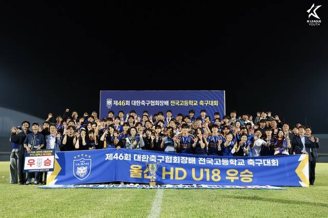 울산 HD 산하 U18 유소년 팀이 '제46회 대한축구협회장배 전국고등학교 축구대회'에서 우승컵을 들어올렸다.