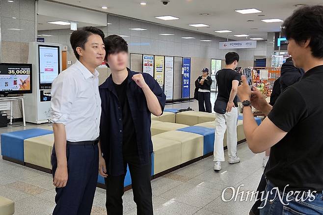 | ▲ 이준석 개혁신당 후보가 21대 대선을 하루 앞둔 2일 오전 경기 시흥시 한국공학대학교를 찾아 '학식먹자 이준석' 행사를 진행하고 있다. |