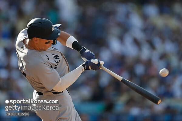 애런 저지(뉴욕 양키스)가 미국 캘리포니아주 로스앤젤레스 다저 스타디움에서 열린 2025 메이저리그(MLB) 정규시즌 LA 다저스와 원정 경기에서 4타수 무안타로 침묵했다.