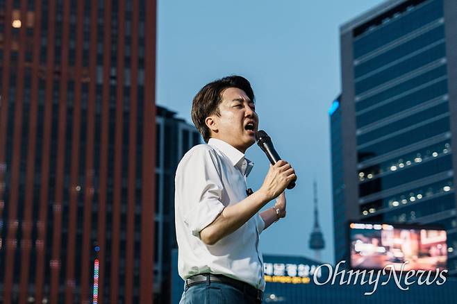 | ▲ 이준석 개혁신당 대선후보가 1일 오후 서울역 광장에서 유세를 하고 있다. |