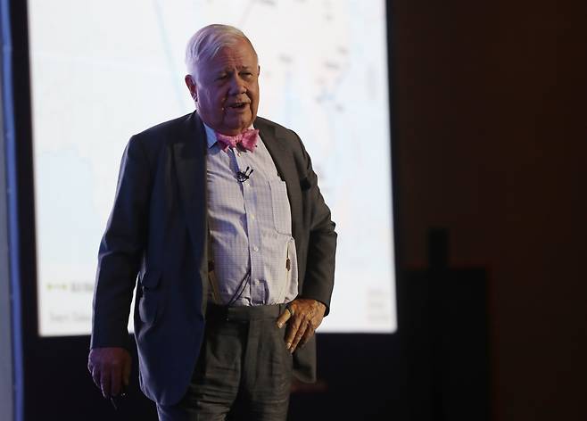 | ▲ 26일 오후 전북 전주시 그랜드힐스턴호텔에서 열린 2019 전북 국제금융 콘퍼런스에서 세계적인 투자가인 짐 로저스 회장이 연설하고 있다. 2021-01-25 |