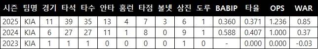 | ▲ KIA 윤도현의 주요 타격 기록(출처: 야구기록실 kbreport) |