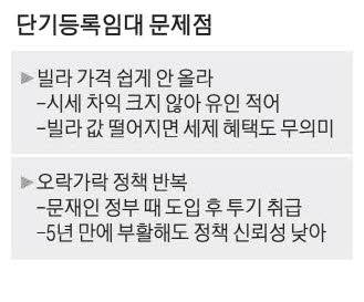 4일부터 6년짜리 민간 단기 등록임대 제도가 시행되지만 시세 차익이 크지 않으리라고 예상하는 집주인이 많아 큰 호응은 기대하기 어려울 전망이다. 빌라와 오피스텔 등 비아파트에 대해서만 이뤄지는 제도여서 향후 빌라 등의 가격이 하락할 경우 세제 혜택 등도 마뜩잖다.