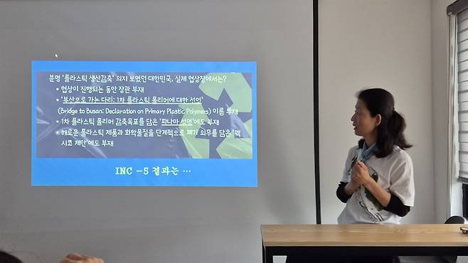 | ▲ 세계 환경의 날 기념 강연에서 발표하고 있는 소노스 작가 |