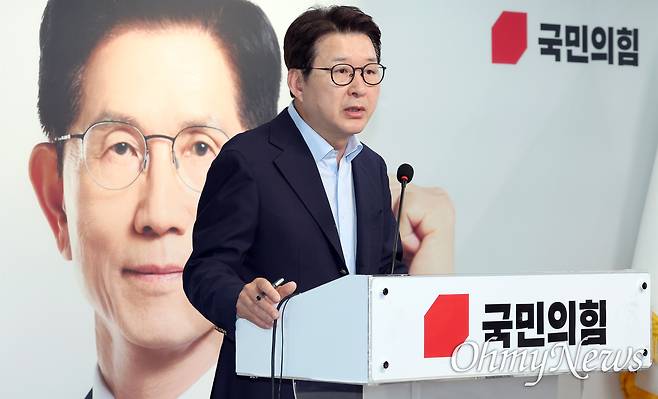 | ▲ 국민의힘 김용태 비상대책위원장이 5월 30일 경기도 화성시 동탄역 인근에서 사전투표 관련 기자회견을 하고 있다. |