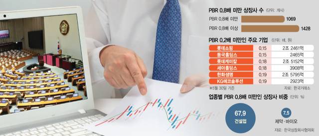 더불어민주당이 주가순자산비율(PBR) 0.8배 미만인 상장사에 대해 상속·증여세 부담을 늘리는 법안을 추진하는 동시에 PBR 0.2배 미만 기업에 대해서는 청산 필요성을 주장하는 등 PBR을 증시 정책 기준으로 적극 활용하고 있다. 하지만 PBR은 업종 특성이나 자산 구성 및 성장성에 따라 제각각이라 절대적 기준이 될 수 없을 뿐 아니라 PBR이 낮은 상장사들이 고의로 주가를 낮추고 있다는 근거도 명확하지 않아 업계의 우려가 높아지고 있다.