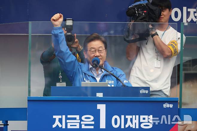 [광명=뉴시스] 고승민 기자 = 이재명 더불어민주당 대선 후보가 2일 경기 광명 철산로데오광장에서 유세를 하고 있다. 2025.06.02. kkssmm99@newsis.com