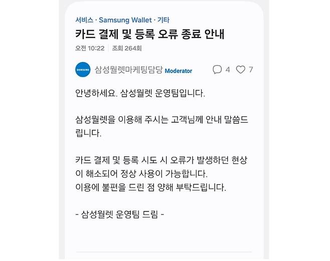 삼성은 이날 10시20분쯤 별도 공지를 올려 오류를 해소, 정상 사용이 가능하다는 공지를 올렸습니다.