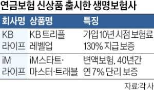 iM라이프도 연령별 수요를 세분화한 연금보험 4종을 이날 새로 선보였다. ‘iM스타트·마스터·트래블 프로 변액연금보험’ 3종과 ‘iM세이프 프로 연금보험’ 등이다. 변액연금보험 3종은 최대 40년간 연 7% 단리, 이후 연 5% 단리로 이자를 더한 연금액을 보장한다. iM라이프 관계자는 “복리를 기준으로 하면 연 4.5% 수준”이라며 “최소 연 7% 단리를 보장하면서 운용 성과에 따라 더 많은 보험금을 받을 수 있다”고 설명했다. 이 회사는 고객의 생애 주기별 연금 준비를 지원하는 ‘iM 프로 연금센터’도 공식 개소했다.