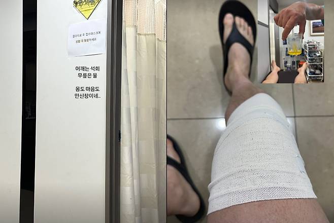 2일 이루는 개인 계정을 통해 "어깨는 석회, 무릎은 물. 몸도 마음도 만신창이네"라는 글과 함께 병원에서 찍은 사진을 공개했다.