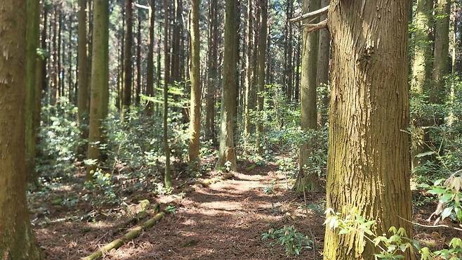 | ▲ 2025년 4월 29일 시험림길의 삼나무 숲길 |