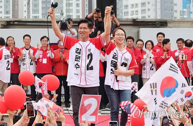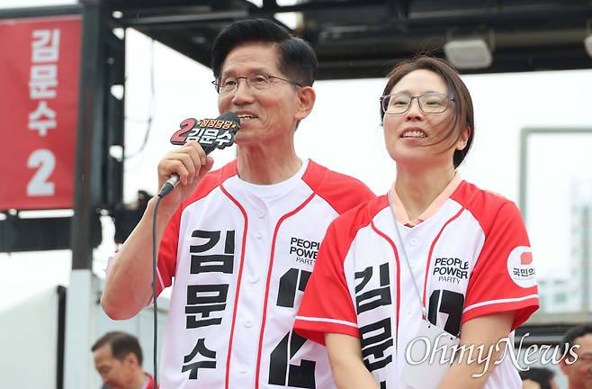 [오마이포토] 딸과 함께 지지 호소하는 김문수 후보