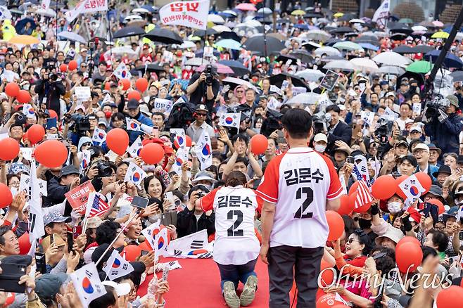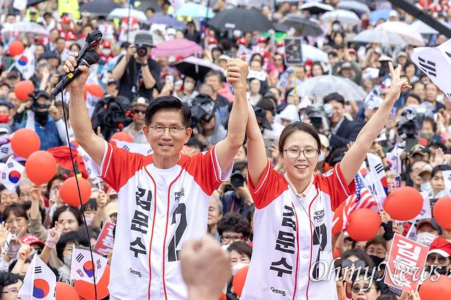 [오마이포토] 딸과 함께 지지 호소하는 김문수 후보