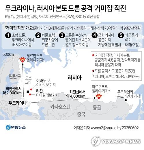 [그래픽] 우크라이나, 러시아 본토 드론 공격 '거미집' 작전