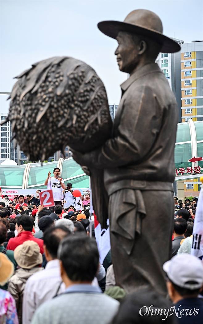 [오마이포토] 박정희 동상 세워진 광장에 선 김문수