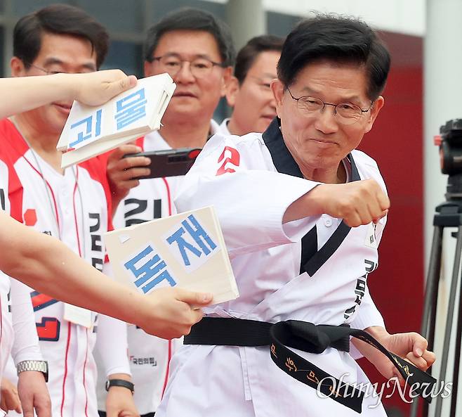 | ▲ 태권도 실력 뽑낸 김문수, '부정 부패' 격파 #Shorts ⓒ 유성호 |