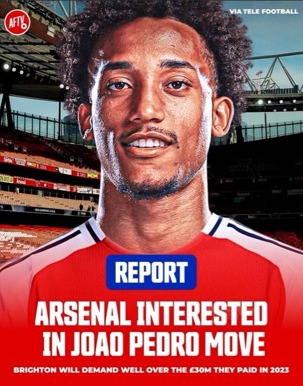 앞서 '커트 오프사이드'는 같은 날 "아스널은 이번 여름 브라이튼의 공격수 페드로를 영입하는 데 관심이 있다. 브라이튼 또한 적절한 제안이 들어오면 그를 매각할 의향이 있다"라고 밝혔다.