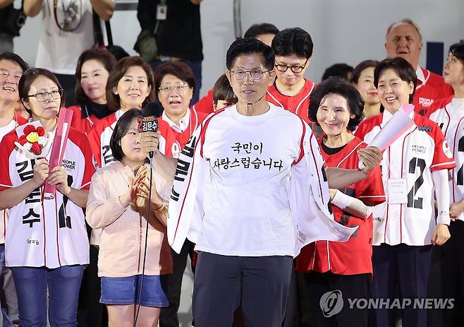'국민이 자랑스럽습니다' 문구 적힌 옷 입은 김문수 후보
