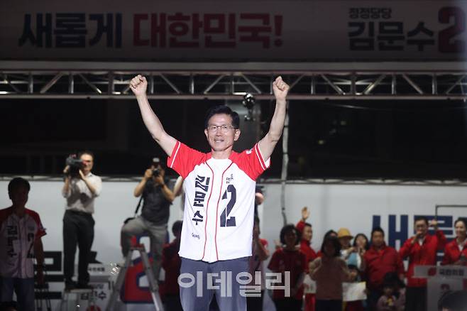 [이데일리 이영훈 기자] 김문수 국민의힘 대선 후보가 2일 서울시청 앞 서울광장에서 열린 피날레 유세에서 지지를 호소하고 있다.