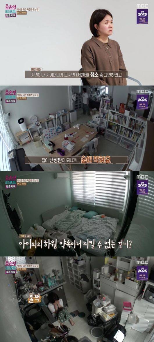 아내는 “예전 모습과 많이 달라졌다. 예전에는 지인, 시어머니가 오시면 청소 좀 그만하라고 했다. 집이 난장판이 되니까 숨이 막힌다. 제가 정리를 해야 하는데”라고 달라진 일상에 힘들어했다.