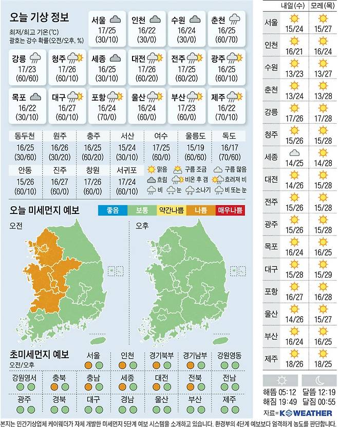 전국 대체로 흐리고 남부 지방 비