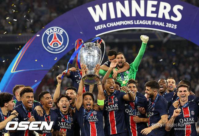 파리 생제르맹(PSG)은 지난 1일(한국시간) 독일 뮌헨 알리안츠 아레나에서 열린 2024-2025시즌 UCL 결승전에서 인터 밀란을 5-0으로 격파하며 대회 정상에 올랐다. 이로써 PSG는 1970년 창단 후 55년 만에 처음으로 빅이어(UCL 우승 트로피)를 따내며 꿈을 이뤘다. 아울러 프랑스 리그1, 트로페 데 샹피옹, 쿠프 드 프랑스 우승에 이어 역사적인 '쿼드러플(4관왕)'까지 달성하며 최고의 시즌을 보냈다.