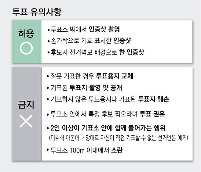 본인 도장-연필로 기표하면 무효표… 기표소 내부서 투표지 촬영은 불법
